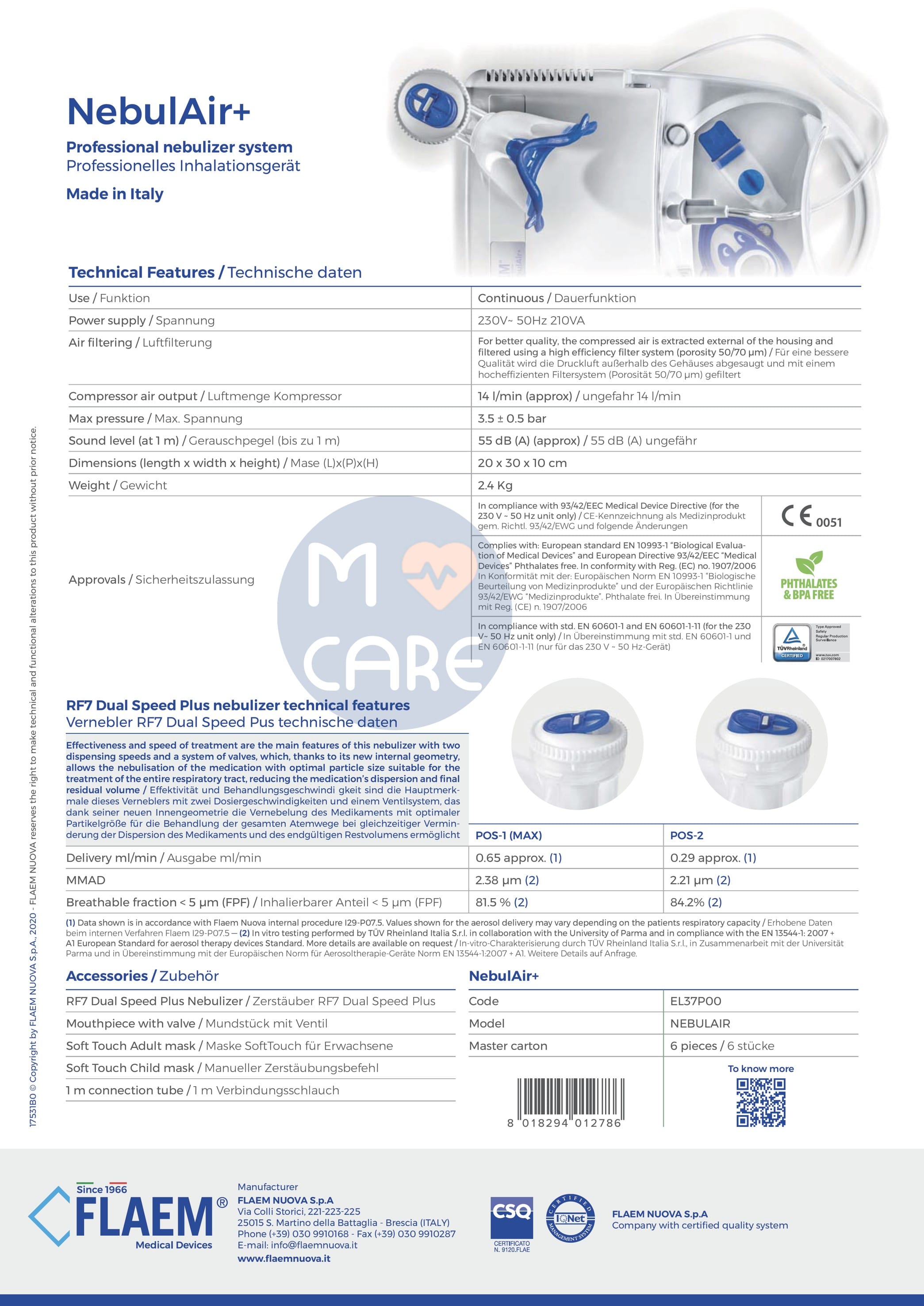 เครื่องพ่นละอองยาแบบพกพา FLAEM Nebulizer รุ่น Nebulair+ (EL37P00)