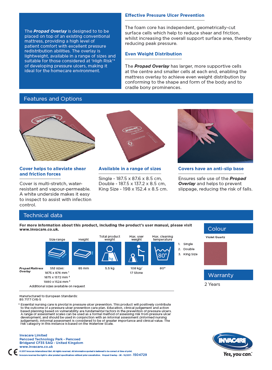 ที่นอนโฟม ป้องกันแผลกดทับ INVACARE รุ่น Propad