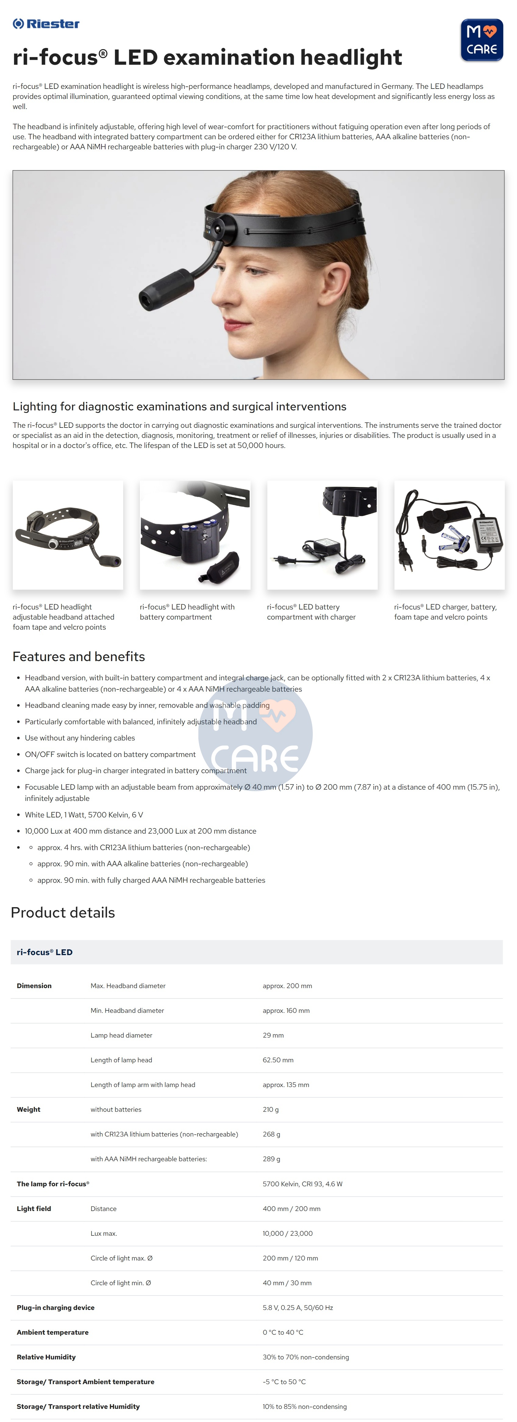 โคมไฟส่องตรวจ RIESTER Examination Headlight รุ่น ri-focus LED (R6091)
